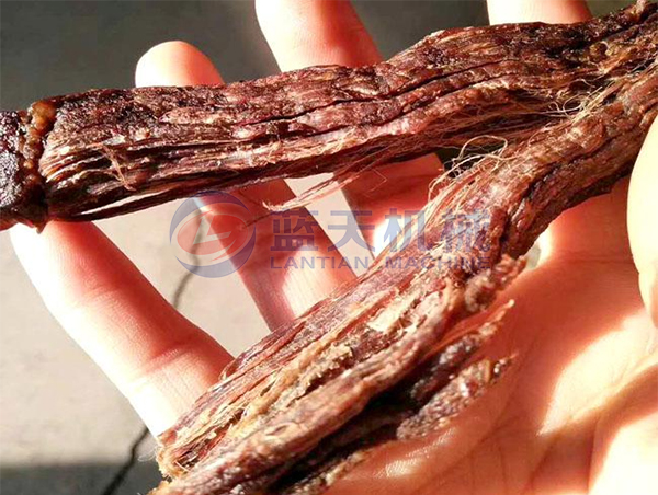 將肉條懸掛好在風(fēng)干室進(jìn)行風(fēng)干或新型熱泵牛肉干烘干房內(nèi)選擇智能風(fēng)干模式。注意:肉條不能滴水,要掛直,相互不要粘連、肉條與肉條之間保留一點距離,以利于通風(fēng)透氣,干燥均勻。一般在溫度40℃,溫度約60%左右的室內(nèi)環(huán)境下,36小時即可干燥一批。這時可見牛肉顏色暗紅,手捏感覺干燥且微硬。